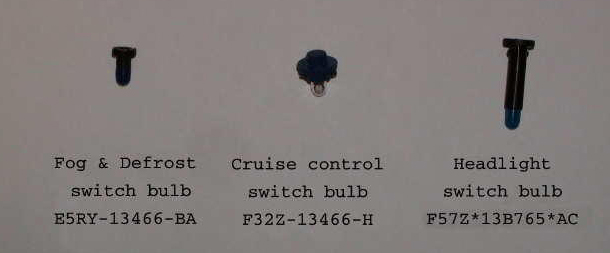 Fog/Defrost, Cruise, & Headlight Bulb Numbers for 95-01 Explorers and Sport Tracs