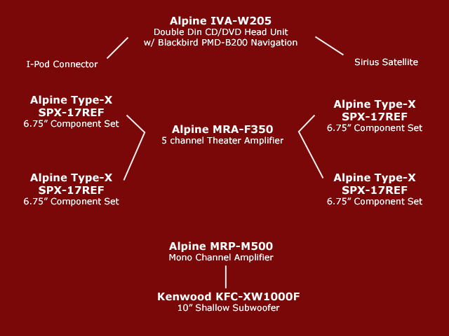 I have the Alpine component sets, the Kenwood sub, and the Alpine MRP-M500, but have not installed them yet. Once the weather warms up, I'll fiberglass the box and install everything then.